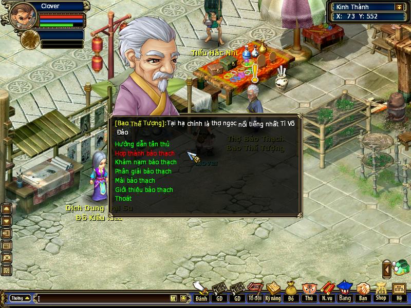 Đại hiệp có thể hợp thành bảo thạch cao cấp tại NPC Bảo Thế Tượng (76. 546) ở Kinh Thành.